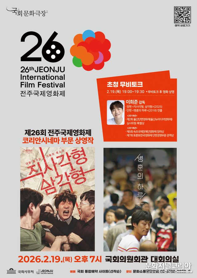 상영에 앞서 두 작품을 연출한 이희준 감독이 참석하는 무비토크도 마련돼, 작품의 기획 의도와 제작 과정, 영화가 던지는 질문에 대해 관객과 직접 소통하는 시간을 가질 예정이다. 국회문화극장이 단순한 상영 공간을 넘어, 창작자와 관객이 사유를 나누는 공론의 장으로 기능하고 있음을 보여주는 대목이다. 예매는 2월 5일부터 대한민국 국회 통합예약 사이트를 통해 진행된다.