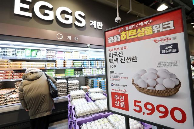1일 서울 강서구 홈플러스 강서점에 '미국산 백색 신선란'이 판매되고 있다. 농림축산식품부는 국내 고병원성 조류인플루엔자(AI) 확산에 따른 계란 수급 불안에 대비해 미국산 신선란을 시범 수입했다. 홈플러스는 수입 물량을 선제적으로 확보, 미국산 백색 신선란(30구) 4만 5000판을 국내 마트 단독으로 판매한다. /뉴스1