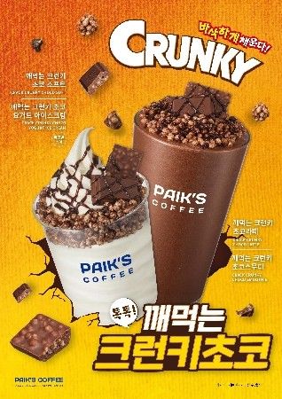'깨먹는 크런키 초코라떼'와 '깨먹는 크런키 초코스무디'는 진한 초코 음료와 스무디에 크런키를 더해 더욱 깊은 초콜릿 풍미를 느낄 수 있으며, '깨먹는 크런키 초코 아이스크림'은 부드러운 아이스크림과 바삭한 토핑이 어우러져 색다른 식감을 제공한다. 매장 운영 방식에 따라 소프트 또는 요거트 아이스크림으로 제공된다.