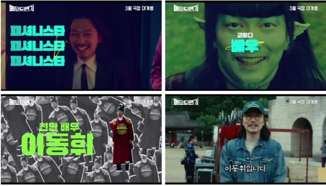 함께 공개된 예고편은 패셔니스타이자 코미디 배우, 천만 배우 등 다양한 수식어를 지닌 배우 이동휘가 박수갈채를 받으며 등장해 관심을 집중시킨다. 지난 필모그래피가 주마등처럼 스치는 가운데, 사극 촬영으로 정극에 도전하게 된 이동휘는 새로운 각오를 다지지만 고성이 오가는 일촉즉발의 촬영 현장과 감독의 싸늘한 표정, 주변의 회의적인 반응은 그의 앞날이 결코 순탄치 않을 것임을 암시한다.