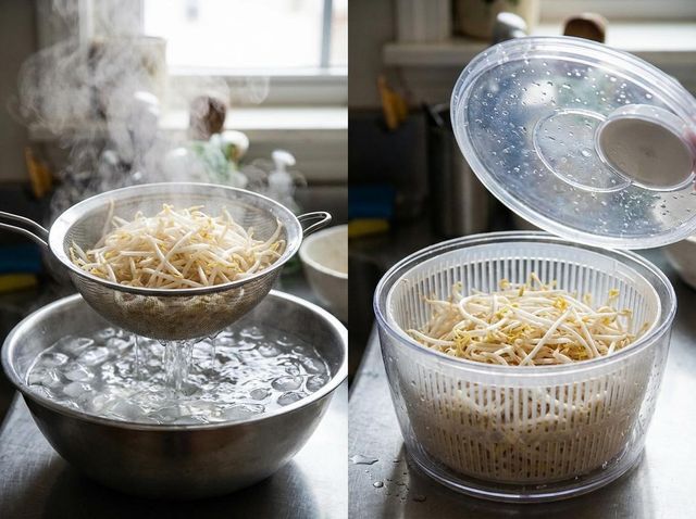 콩나물은 삶은 직후의 처리도 식감을 좌우한다. 냄비에서 꺼내자마자 찬물에 바로 담가 잔열을 빼야 한다. 잔열이 남아 있으면 콩나물은 계속 익어 줄기가 질겨진다. 찬물에 잠시 담갔다가 바로 건져내는 과정만으로도 아삭함 유지 시간이 확연히 달라진다. 기사 내용 토대로 AI툴 활용해 제작한 자료사진.