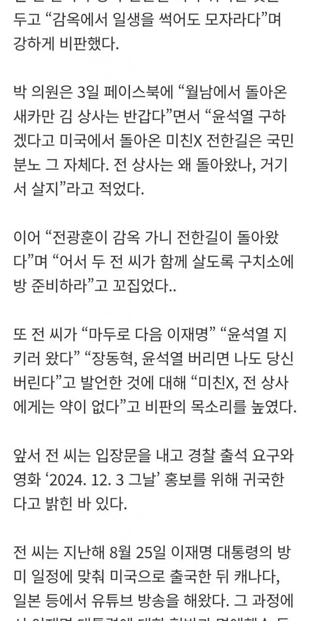 전한길 귀국에 빡친 박지원 ㅋㅋㅋㅋ