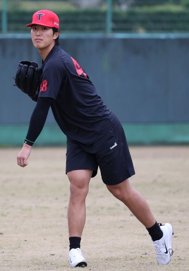 이의리는 5일 일본 가고시마현 아마미오시마의 아마미카와쇼구장에서 스프링캠프 첫 번째 불펜투구를 소화했다. 이범호 감독을 비롯해 코칭스태프가 지켜보는 가운데서 공 하나하나에 집중했다.