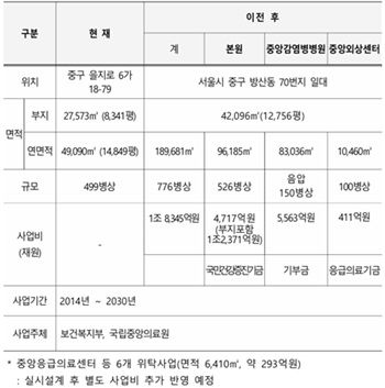 보건복지부가 국립중앙의료원 신축이전 및 중앙감염병병원 건립사업의 총사업비를 당초 1조4,800억원에서 3,545억원 증액한 1조8,345억원으로 확정하고, 내년 상반기 착공을 위한 실시설계에 본격 착수했다.