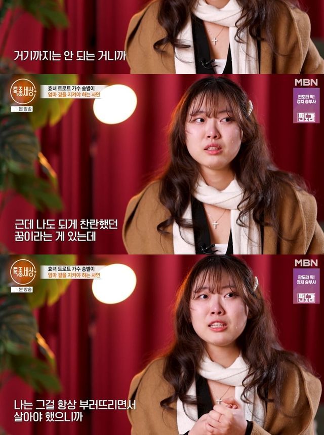 5일 방송된 MBN '특종세상'에는 '효녀 트로트 가수' 송별이의 일상이 공개됐다.