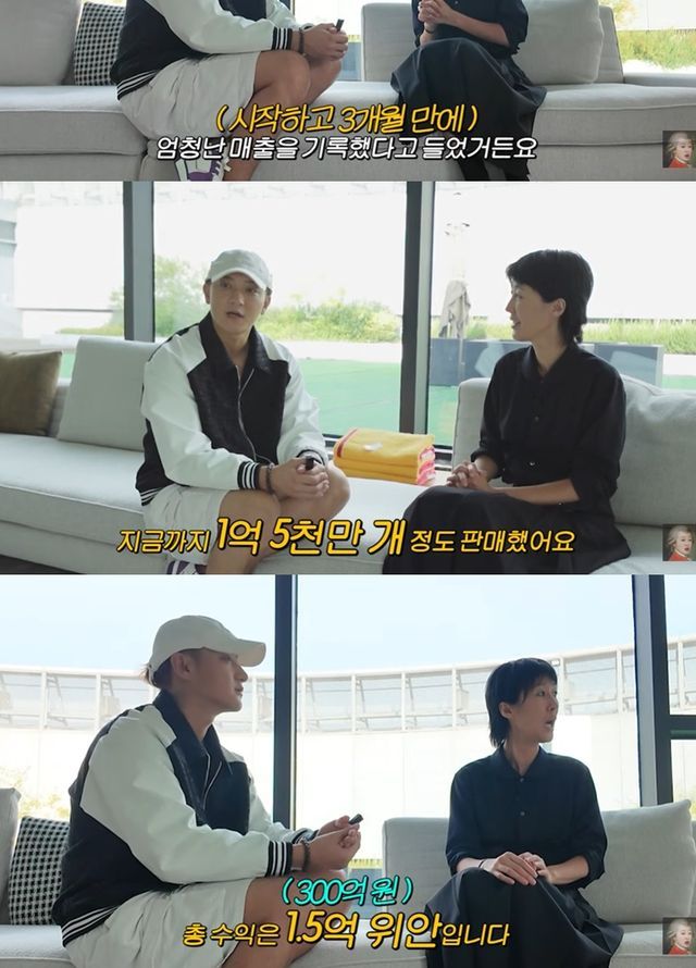매출에 대해서는 "지금까지 1억 5천만 개 정도 판매했다. 총수익은 1.5억 위안(300억 원)이다"며 3개월 만에 300억 매출을 달성했다고 밝힌 뒤 "순수익은 많지 않다. 현재 6개의 공장 생산 라인을 운영 중이고, 250억 원을 투입했다. 아직 본전 회수도 못 했다"고 솔직히 고백했다.