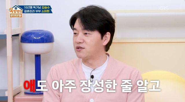 이날 김승수는 ‘솔로 동지’였던 김종국의 결혼 소식을 들었던 당시를 회상해 눈길을 끌었다. 그는 “소식을 듣자마자 ‘와 이럴 수가 있나? 다들 만나는 사람 없다고 해놓고, 이렇게들 비밀 연애를 다 하네’ 싶더라. 배신감도 느끼고, 한편으론 프로그램 폐지되나 싶었다”라며 울분을 쏟아 웃음을 자아냈다. 또한 김승수는 “애인을 안 만나는 게 아니라 못 만나는 것”이라면서 “마지막 연애는 16년 전이다. 미혼인데 사람들이 다들 한 번 갔다 온 줄 안다. 장성한 애가 있는 줄 알기도 한다”라며 억울함을 호소했다. 또한 “최근에는 AI랑 술 한잔을 하기도 한다. 그런데 AI는 자꾸 그만 드시라고 산통을 깬다”라면서 웃픈 근황을 공개하기도 했다.
