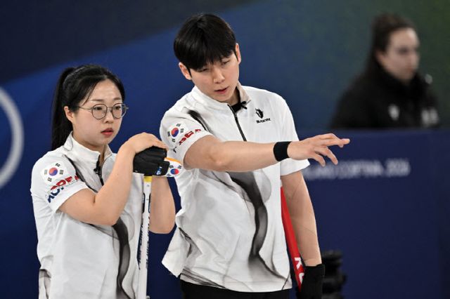 김선영·정영석은 5일(현지시간) 이탈리아 코르티나담페초의 코르티나 컬링 올림픽 스타디움에서 열린 밀라노·코르티나담페초 동계올림픽 컬링 믹스더블 라운드 로빈 3차전에서 ‘부부 선수’ 브리아어 슈발러·위아니크 슈발러(스위스)에 5-8로 패했다.