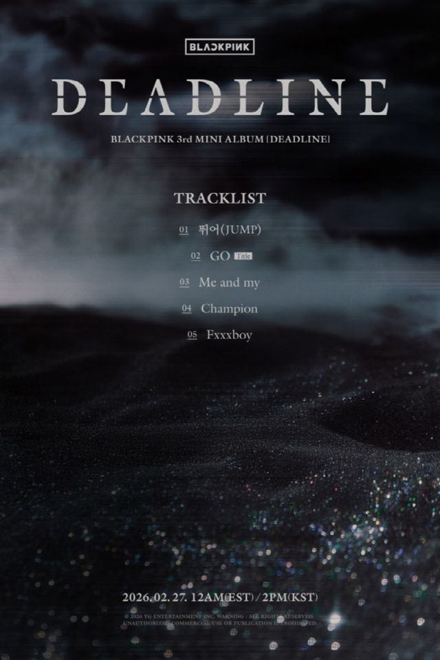6일 YG엔터테인먼트가 공개한 트랙리스트 이미지에 따르면 블랙핑크는 3번째 미니앨범 ‘데드라인’(DEADLINE)에 총 5곡을 수록했다.