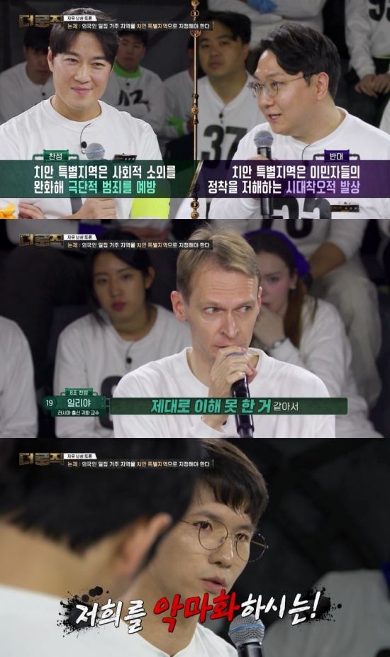 먼저 찬성 팀의 채성준은 “치안 특별지역 지정은 사회적 소외를 완화해 극단적 범죄를 예방할 수 있다”고 포문을 열었다. 이에 반대 팀의 신인규는 “이민자들의 정착을 저해하는 구석기 시대적 발상”이라고 맞섰다.