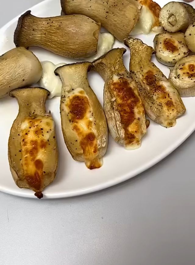 이후 에어프라이어 180도에 15~20분 돌리면 완성이다. 속은 짭짤한 치즈의 맛이 느껴지면서 겉은 고소한 버섯의 맛이 어우러져 레스토랑에서 먹을 만한 일품요리를 집에서도 즐길 수 있다.