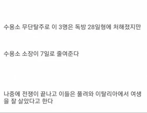 이탈리아인 포로가 수용소를 탈옥한 이유