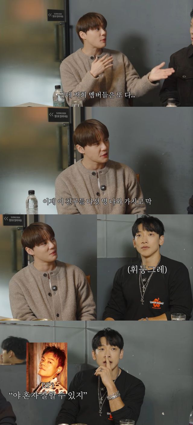 비는 "예전에는 리허설을 보지 않나. 팔짱 끼고 얼마나 잘하나 보는데 다섯 명이 춤추고 노래하다가 김준수가 애드리브를 했다. 거기서 제가 놀랐다. '뭐야? 목소리 뭐야?' 했다"고 과거 5명의 활동 시절을 언급했다.