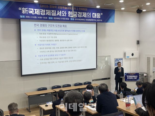 이 교수는 한국 경제를 둘러싼 대내외 환경을 위험 요인이 중첩된 상태로 진단했다. 미·중 갈등과 자국 우선주의 확산으로 관세와 통상 규제가 정치적 수단으로 활용되는 지경학 시대가 본격화됐고, 미국과 중국 양국에 동시에 의존하는 한국의 수출 구조는 이러한 환경 변화에 취약하다는 설명이다.