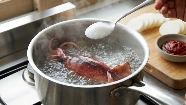 보통 채소를 데칠 때는 색깔을 선명하게 하기 위해 소금을 넣는다. 하지만 오징어와 같은 해산물을 데칠 때는 소금보다 설탕이 훨씬 효과적이다. 오징어를 데치는 물에 설탕 한 스푼을 넣는 것만으로도 식감이 완전히 달라진다. 이는 설탕이 오징어의 살을 부드럽게 만들어주는 역할을 하기 때문이다.