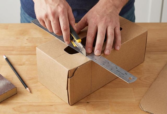 만드는 과정은 단순하다. 먼저 남은 티슈를 모두 꺼내고 박스를 비운다. 이 티슈는 먼지 닦기나 거울 청소용으로 활용하면 된다. 이후 수납할 장소의 높이를 재고, 각티슈 통 네 면을 같은 높이로 잘라낸다. 칼이나 가위 모두 가능하다.