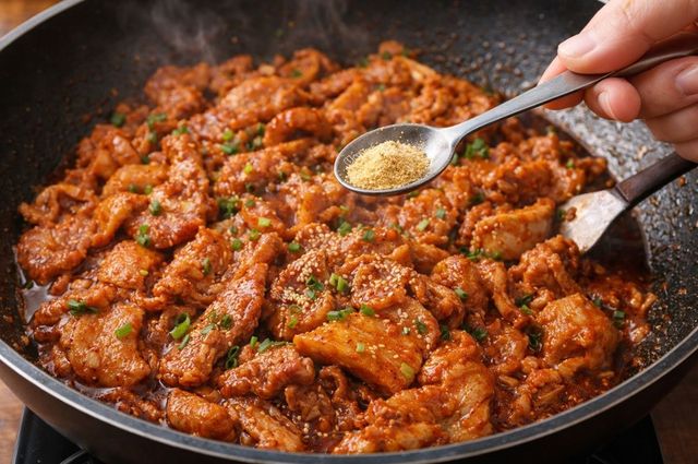 고기와 양념의 조합이 이미 진한 요리인 만큼 다시다는 한 꼬집 수준으로만 사용해도 효과가 나타날 수 있다. 정확히는 작은술 기준 1/4에서 1/2작은술 정도가 가장 현실적인 범위다. 이 정도만 지키면 제육볶음의 매콤 달콤한 매력은 그대로 살리면서, 한층 깊고 또렷한 맛으로 밥 한 그릇을 더 부르게 만드는 제육볶음을 만들 수 있다.