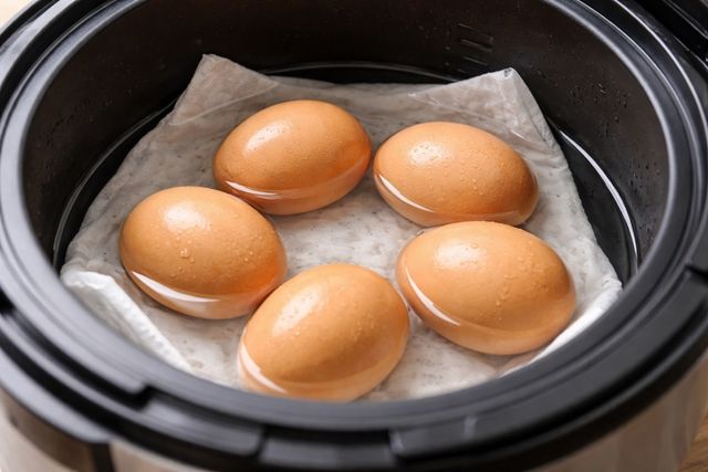 전기밥솥에 계란을 넣은 모습. 기사 이해를 돕기 위해 AI를 활용해 제작한 자료 사진입니다. 실제 모습과 다소 차이가 있을 수 있습니다.