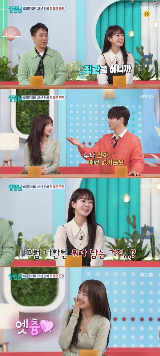 7일 방송된 KBS 2TV '살림하는 남자들 시즌2'에서는 이요원이 츄에게 배운 애교를 선보이는 모습이 전파를 탔다.
