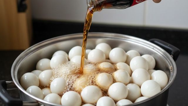 메추리알에 콜라를 붓는 모습. AI가 생성한 자료사진.