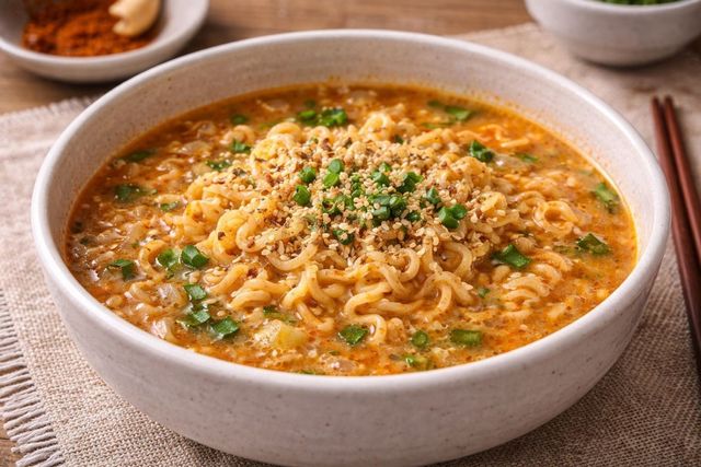 완성된 콩가루 라면 모습. 기사 이해를 돕기 위해 AI를 활용해 제작한 자료 사진입니다. 실제 모습과 다소 차이가 있을 수 있습니다.