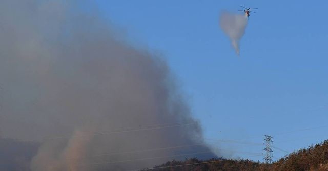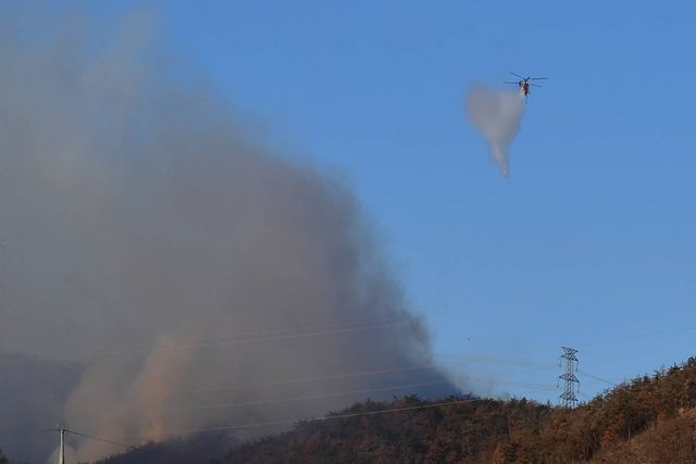 다만 산불이 난 산 정상 부근에 송전탑이 있어 헬기가 가까이 접근하기 어렵고, 이 때문에 진화에 어려움이 있는 것으로 전해졌다.