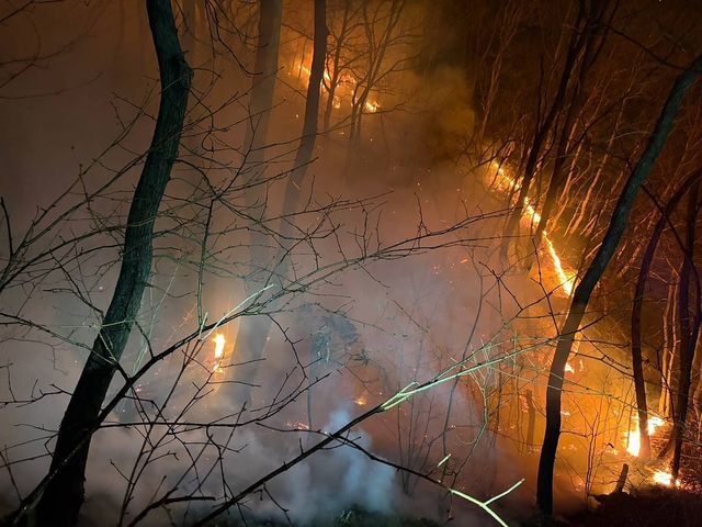 지난 7일 오후 9시 40분쯤 경북 경주시 문무대왕면 입천리에서 발생한 산불이 강풍을 타고 이틀째 번지면서, 주민들은 혹시 피해가 커질까 불안해하고 있다.
