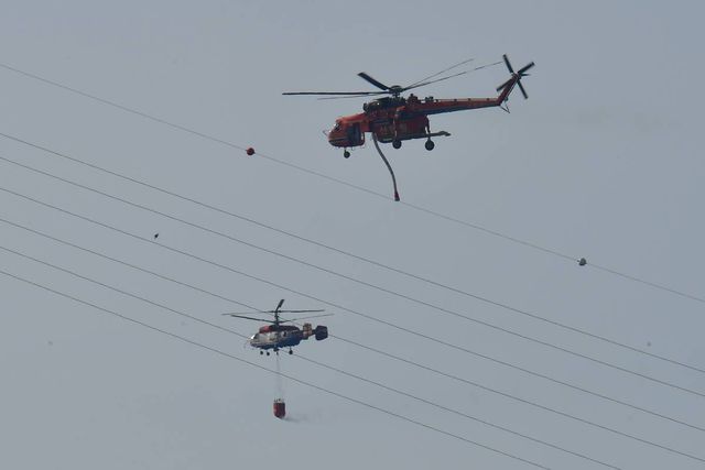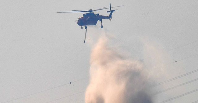 송전선 넘나드는 초대형 헬기…강풍 속 산불 진화 ‘아찔한 사투’ / 뉴스1