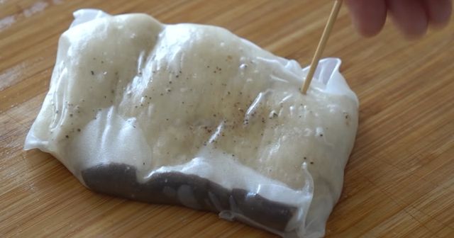 다만 버섯에 튀김옷이 잘 붙고 바삭하면서도 칼로 잘 썰리는 돈까스를 만들기 위해서는 수분 조절이 가장 중요하다. 새송이버섯은 자체 수분이 많은 식재료이기 때문에 손질 후 바로 튀김옷을 입히기보다 키친타월로 단면까지 한 번 더 눌러 물기를 제거해 주는 과정이 필요하다.