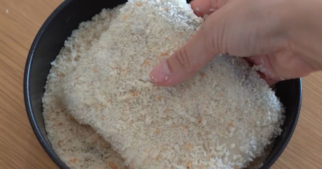 튀김옷은 밀가루, 계란물, 빵가루 순으로 입힌다. 밀가루는 얇게 묻혀야 눅눅해지지 않고, 계란물은 흘러내리지 않을 정도만 적신다. 빵가루는 손으로 가볍게 눌러 결에 잘 붙도록 하는 것이 중요하다. 이 과정을 거쳐야 튀겼을 때 빵가루가 분리되지 않고 깔끔한 모양이 유지된다.