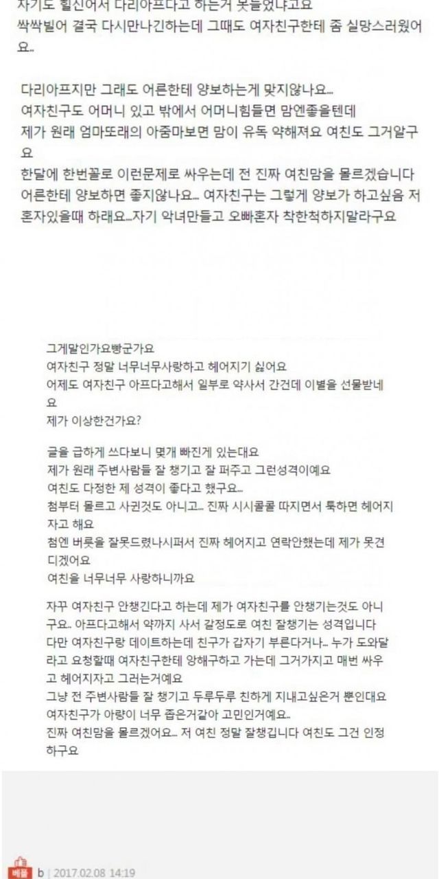 아프다해서 약사줬더니 헤어지자는 여친 썰