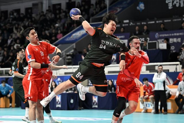 인천도시공사는 8일 충북 청주시 SK호크스 아레나에서 열린 신한 SOL Bank 2025~26 핸드볼 H리그 남자부 3라운드 경기에서 SK호크스를 25-20으로 제압했다.