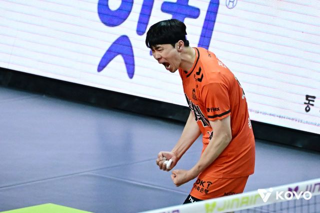 그 선봉장에는 베테랑 전광인이 있다. 이날 그는 외국인 선수 디미타르 디미트로프(등록명 디미트로프)와 나란히 팀 내 최다인 14득점을 기록했다. 전광인은 공격성공률 61.54%를 기록했을 뿐 아니라, 블로킹 4개와 서브에이스 2개로 분위기를 끌고 왔다.