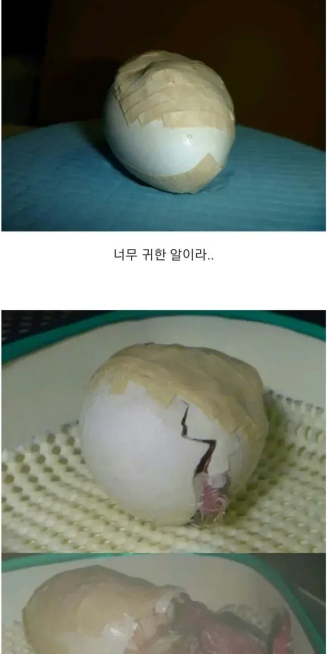 희귀종 새의 알이 깨져서 수선해서 살려냄.jpg