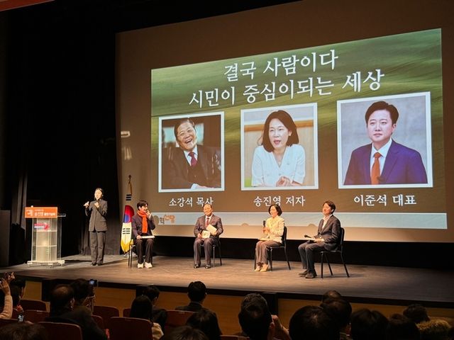 이 자리에는 새에덴교회 담임목사이며 cbs이사장인 소강석 목사와 개혁신당 당대표 이준석 의원이 송 의원의 진행으로 토크콘서트를 진행했다.