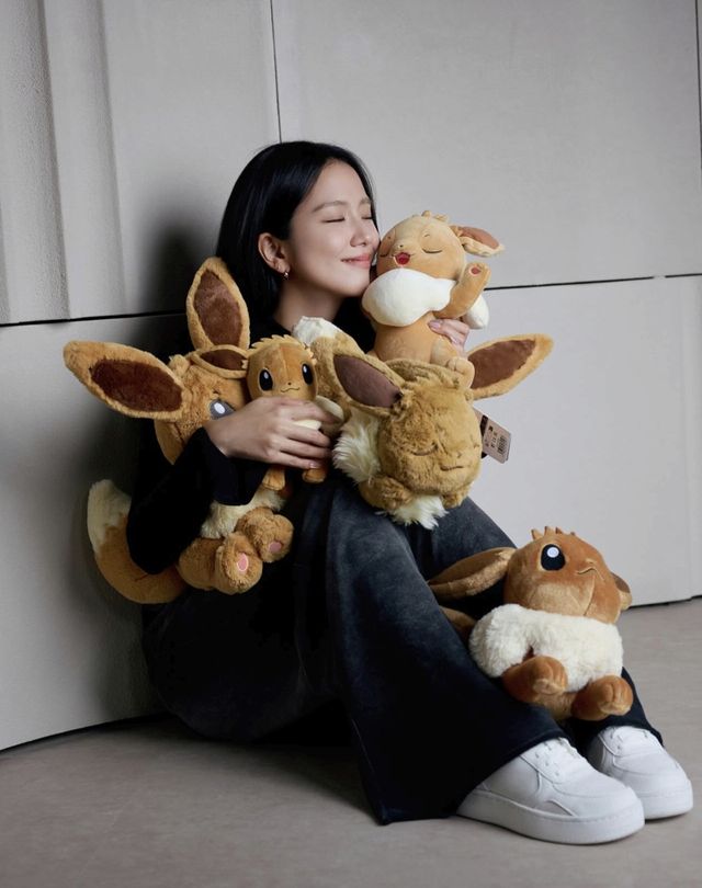 특히 그중에서도 가지각색 사이즈와 제스처의 이브이 캐릭터 인형과 함께 다채로운 포즈를 보여주고 있어 눈길을 끈다.
