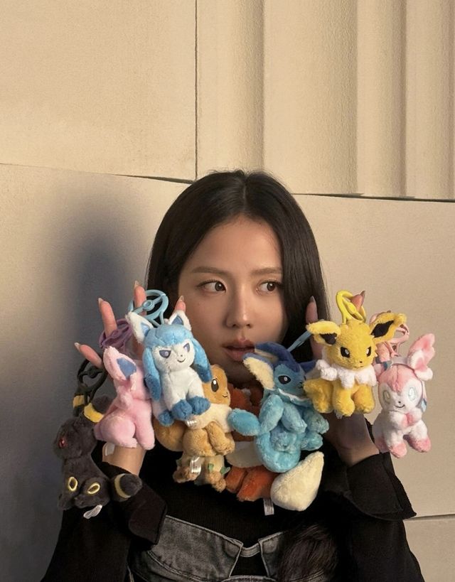 지수는 9일 자신의 SNS에 자신의 ‘최애’ 포켓몬 캐릭터 ‘이브이’와 함께 한 사진을 여러 장 공개했다. 지수는 다양한 포켓몬 캐릭터 키링을 손에 걸고 행복한 미소를 짓고 있다.