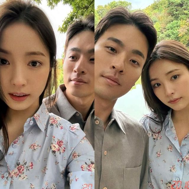 사진 속 두 사람은 초록빛 자연을 배경으로 나란히 서서 카메라를 응시하고 있다. 신세경은 잔잔한 플라워 패턴의 셔츠로 청순한 무드를 완성했고, 박정민은 차분한 톤의 셔츠 스타일로 안정감 있는 분위기를 더했다. 서로를 향해 자연스럽게 기울어진 시선과 가까운 거리감은 연인을 연상케 하며 보는 이들의 시선을 사로잡는다.