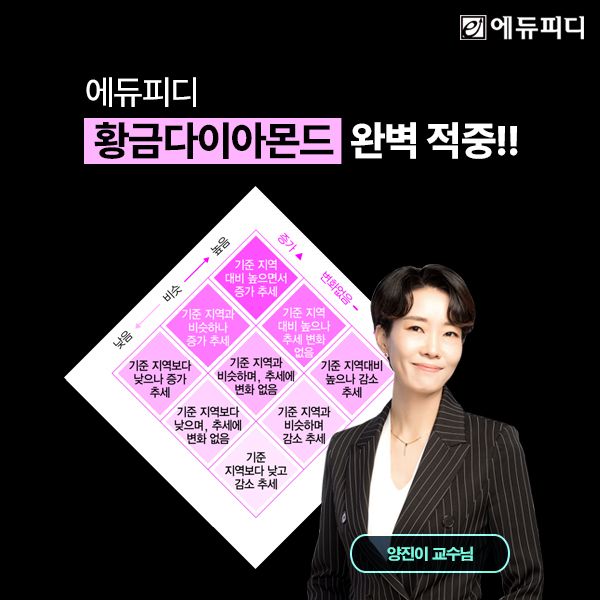 시험 이후 수험생 후기에는 “처음 접하는 유형의 문제였지만, 강의와 교재에서 배운 황금다이아몬드 분석 방법 덕분에 정답을 확신할 수 있었다”는 반응이 이어지고 있다.