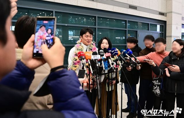 (엑스포츠뉴스 인천공항, 양정웅 기자) 동계올림픽 4수 끝에 감격의 메달을 목에 건 '한국 스노보드 맏형' 김상겸(하이원)이 금의환향했다.
