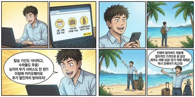 [만화] 진에어 '국내선 얼리버드 특가'를 확인한 사람. AI가 생성한 자료사진.