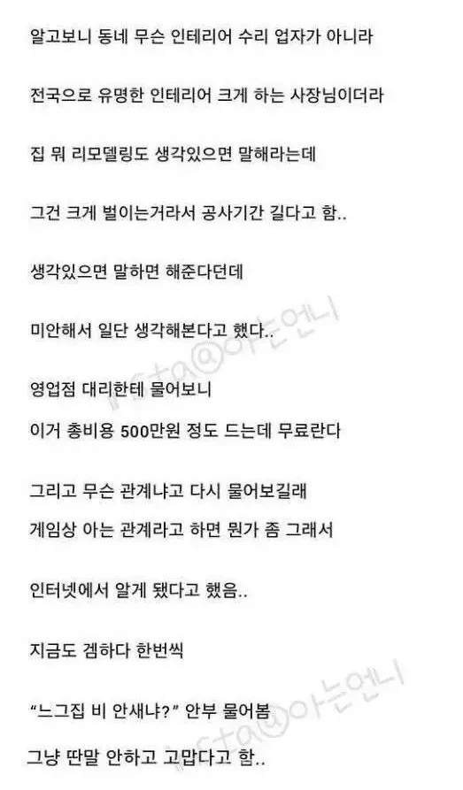 게임하다가 알게된 아저씨가 집을 고쳐줬어요