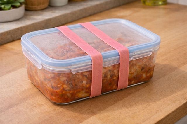 김치통이나 국물 반찬처럼 무게가 있는 용기에도 비교적 잘 버텨 주기 때문에 냉장고 보관이나 이동 시 임시 고정용으로 활용하기에 적합하다. 일회용 랩이나 추가 포장을 줄일 수 있다는 점에서도 실용성이 높다.