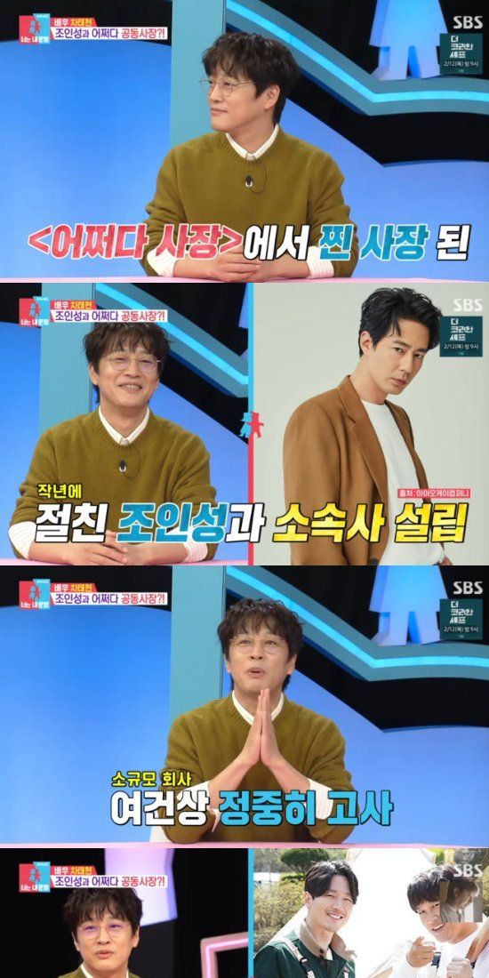 이날 방송에서 서장훈은 "'어쩌다 사장'이 아니라 진짜 사장님이 됐다"면서 소속사 대표 차태현을 소개했다. 차태현은 "조인성과 공동대표로 회사를 차렸다. '매니저 한 명씩 해서 작게 하자'면서 시작했다"고 했다.