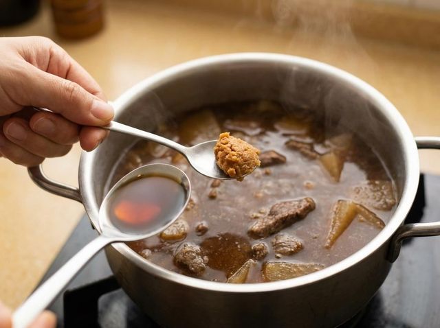 탕국 간은 국간장 1큰술로 뼈대를 잡고, 나머지는 소금으로 맞춘다. 국간장을 많이 쓰면 색이 탁해질 수 있어 최소한만 사용하는 방식이다. 일부 종가에서는 여기에 된장을 아주 소량, 4분의 1큰술 정도 넣는다. 된장 맛이 드러날 정도는 아니고, 고기 국물의 깊이를 보완하는 역할에 가깝다. 기사 내용 토대로 AI툴 활용해 제작한 자료사진.