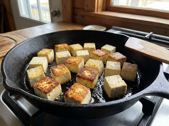 이 탕국의 핵심은 두부 준비 과정에 있다. 두부는 부침용을 쓰는 편이 좋다. 수분이 비교적 적어 국에 들어가도 잘 부서지지 않는다. 팬에는 처음부터 기름을 두르지 않고, 두부를 먼저 올린다. 두부가 팬에 모두 올라간 뒤에야 기름을 아주 소량만 둘러 굽는다. 이렇게 하면 기름 튐을 줄일 수 있고, 겉면만 노릇하게 익히기 쉽다.