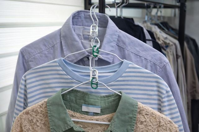 방법은 간단하다. 옷장 봉에 걸려 있는 옷걸이의 고리 부분에 캔따개를 하나 걸고 그 캔따개의 아래쪽 빈 공간에 다음 옷걸이 고리를 끼워 연결하면 된다. 이렇게 하면 옷걸이가 한 줄로 길게 이어지면서 위에서 아래로 수직 정렬이 가능해진다.