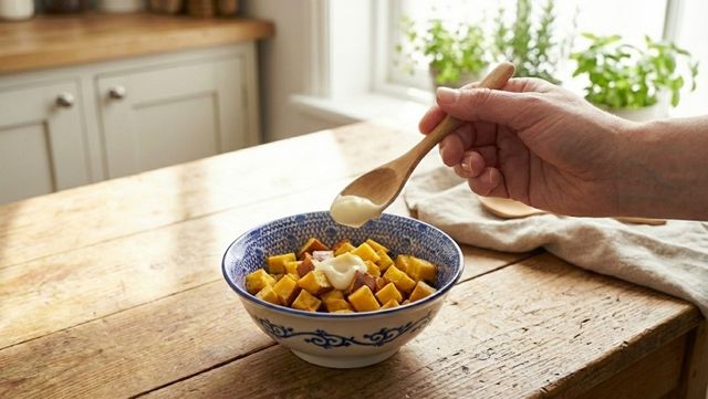 많은 이들이 다이어트를 위해 마요네즈 사용을 망설이지만, 고구마 단감 샐러드에서 마요네즈는 영양 전달의 핵심 가교 역할을 수행한다. 고구마의 주성분인 베타카로틴은 강력한 항산화제로 체내에서 비타민 A로 전환되어 시력 보호와 면역력 강화에 기여한다. 그러나 베타카로틴은 지용성이기 때문에 지방 성분이 없으면 체내 흡수율이 떨어진다. 이때 마요네즈에 포함된 식물성 유지는 이 흡수율을 최대 수 배 이상 끌어 올리는 촉매제가 되는 것이다.