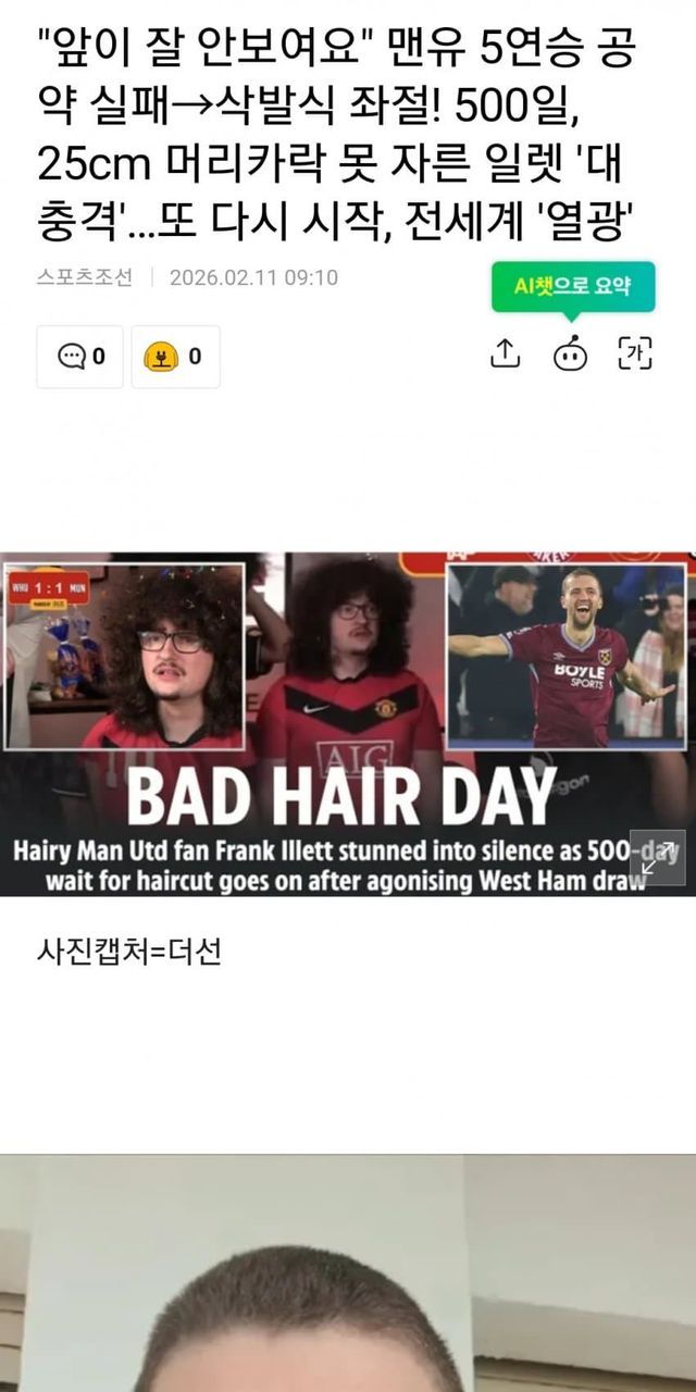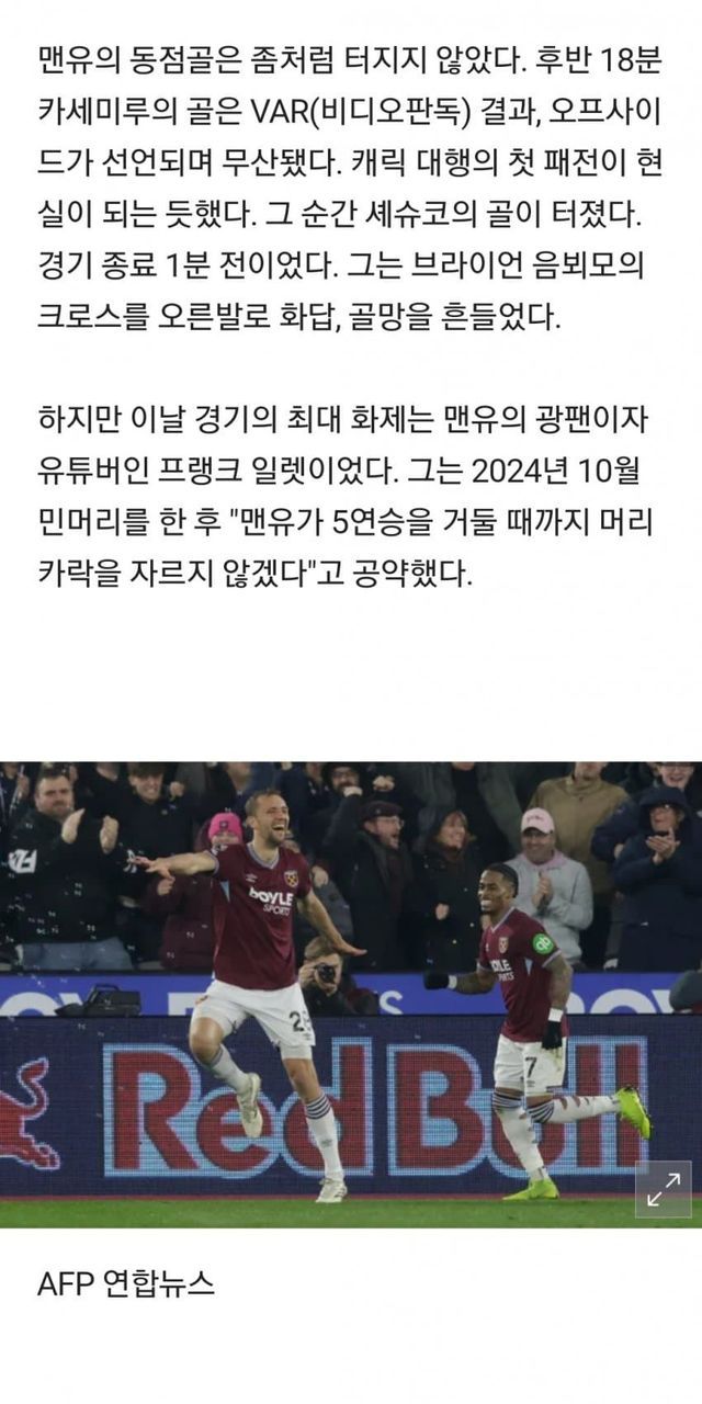 한편 "5연승 머리카락 챌린지"를 시작했던 프랭크 엘릿은 맨유가 웨햄전을 승리하고 5연승을 하면