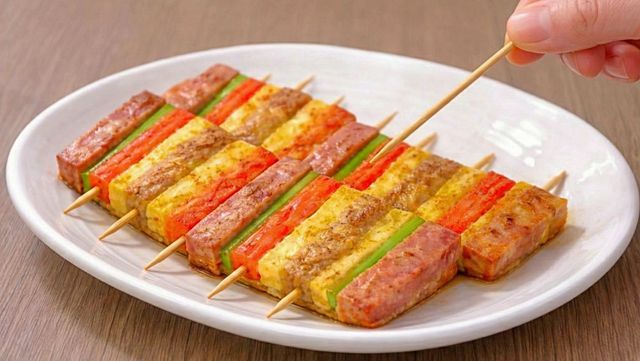산적 꼬치에 이쑤시개 대신 파스타면을 넣은 모습. 기사 내용 토대로 AI툴 활용해 제작한 자료사진.